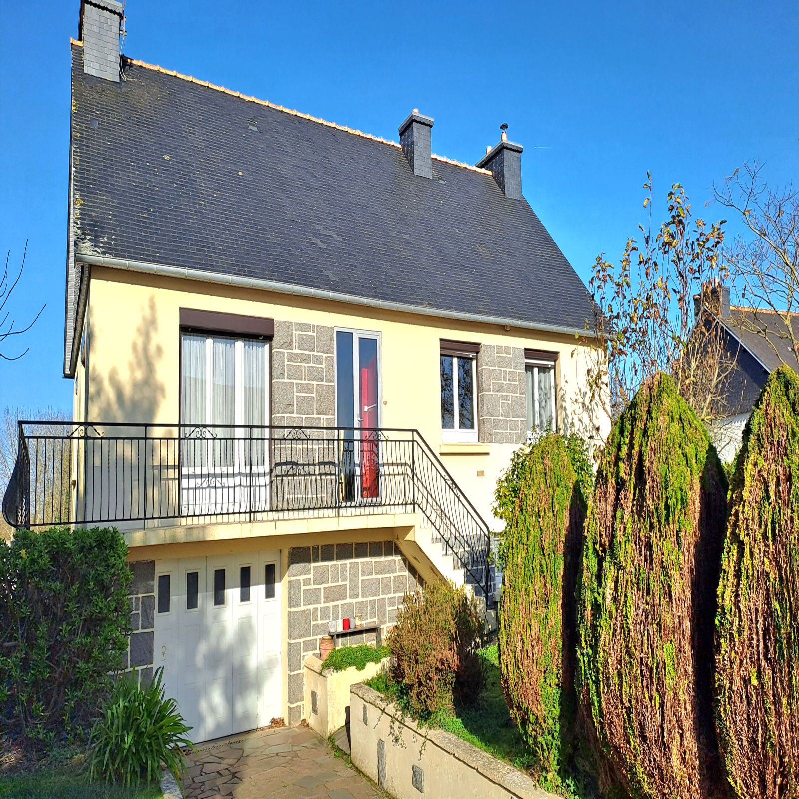 Venez découvrir cette Maison avec sous sol, lumineuse et ensoleillée. Profitez de ce bel espace de vie en PLAIN PIED avec son hall d'entrée, sa cuisine aménagée-équipée, son salon-séjour sur parquet (possibilité d'installer un poêle), Salle de bains, wc indépendant, 3 Grandes Chambres sur parquet. EN PLUS : Balcon en L, Combles aménageables, Toiture récente. SOUS SOL TOTAL bien agencé avec Garage, 2 Pièces isolées à aménager (location ou profession libérale), Buanderie/Cuisine, Chaufferie avec wc et chaudière. Terrain clos, fleuri et arboré + petit verger. Cette habitation se trouve à 5 minutes de PONTRIEUX, 15 Minutes de PAIMPOL et 20 minutes de la gare de GUINGAMP. Renseignements et Visites au 02.96.37.87.34. www.laperle-immobiliere.fr