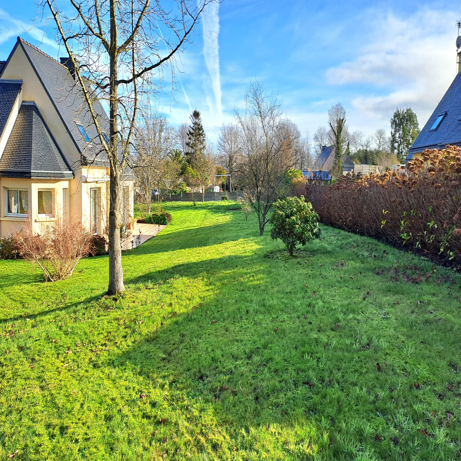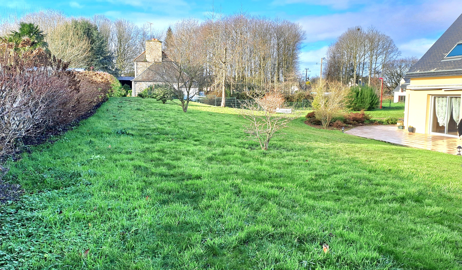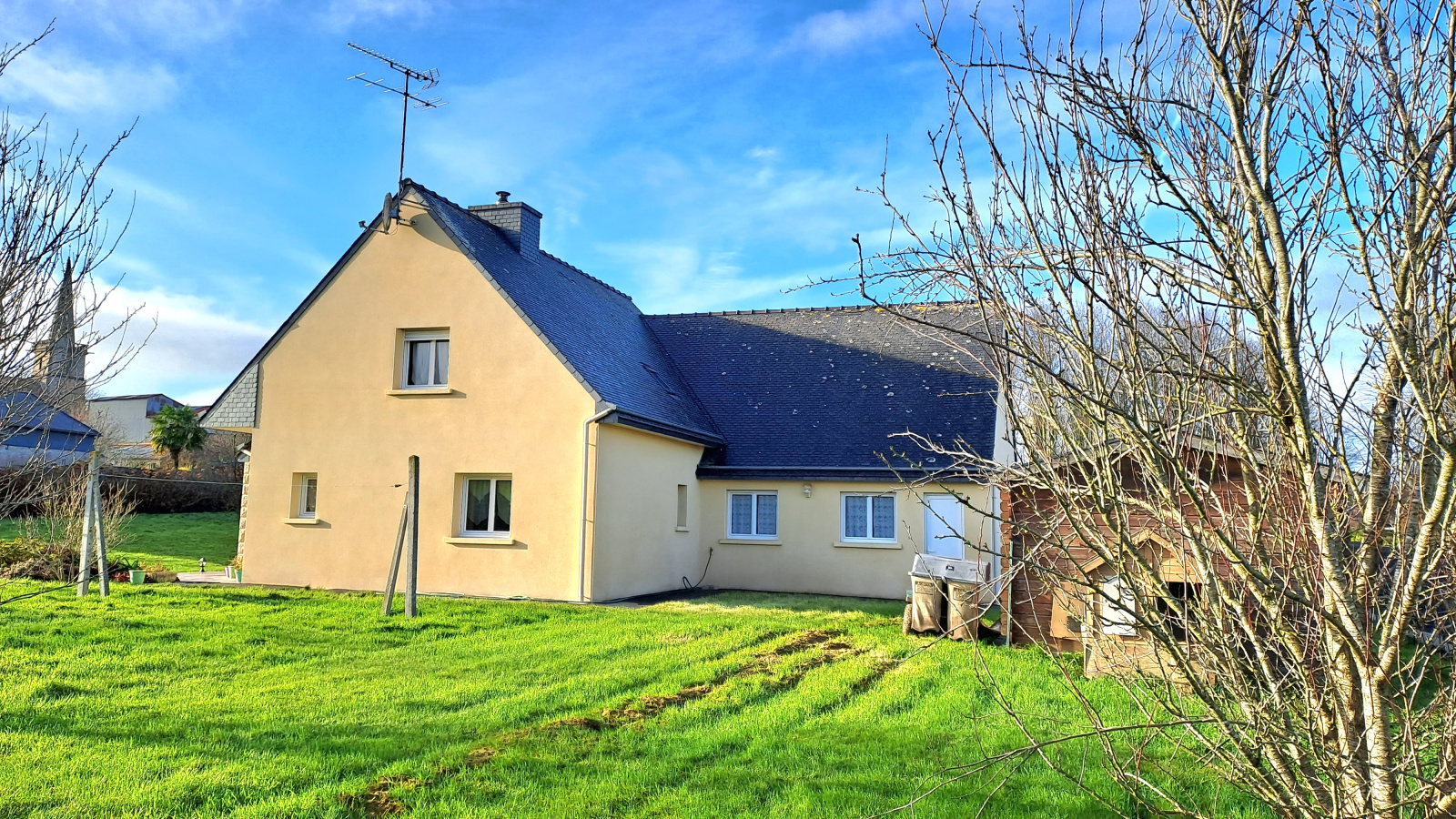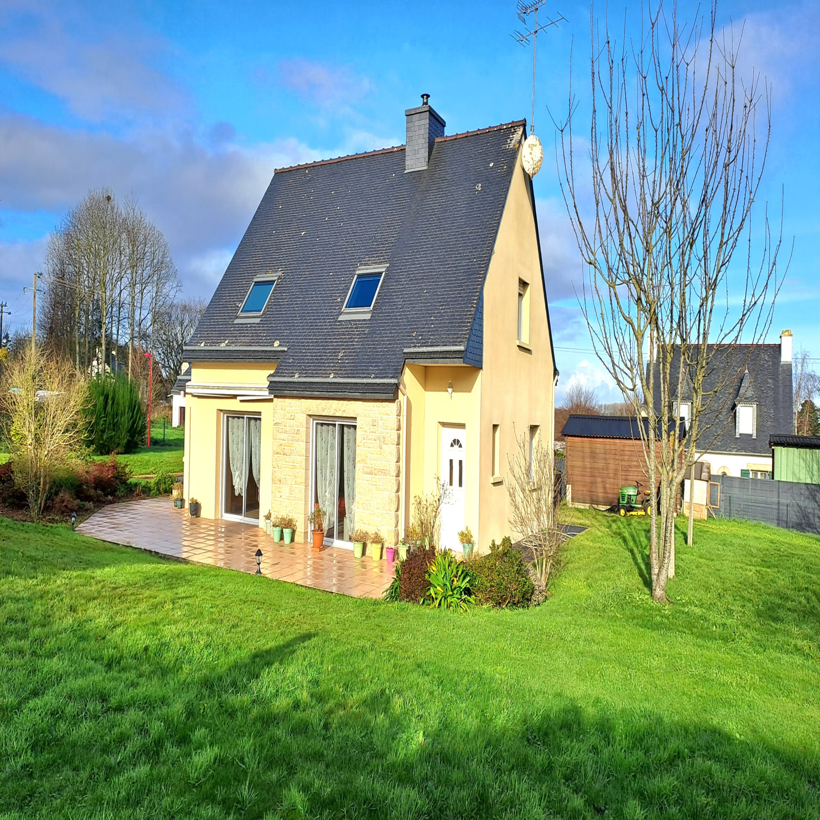 POMMERIT LE VICOMTE, Belle Maison lumineuse exposée plein sud . Au RDC : une entrée vous mène au salon/séjour avec pôele à granules, accès direct sur la Terrasse carrelée exposée sud. Un bow-window s'ouvre sur la cuisine ouverte aménagée-équipée, et "côté nuit" un couloir avec placard + espace de rangement, une chambre, une salle d'eau et un wc séparé. A L'ETAGE : dégagement menant à 3 belles chambres, une salle de bain et un wc séparé. EN PLUS : Un double garage attenant à la cuisine avec espace buanderie et un accès au grenier aménageable. A L'EXTERIEUR : Bel espace végétalisé et arboré de plus de 2000m² avec arbres fruitiers, Terrain clos, Chalet en bois sur dalle béton. SES PLUS : Maison au calme, pas de vis-à-vis, allée bitumée, portail électrique, commerces, écoles, services médicaux .... Tout à proximité ! A 10 minutes de LANVOLLON et 10 min de GUINGAMP, elle saura vous séduire, pas de travaux. Renseignements et Visites au 02.96.37.87.34 ou www.laperle-immobiliere.fr